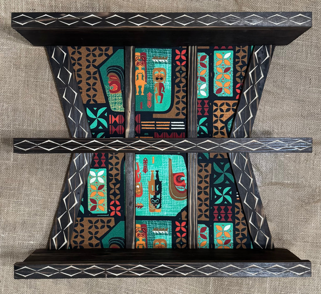 Our new Atomic Luau Shelf designed and handmade by us. Each piece is unique. Comes ready to hang on the wall.